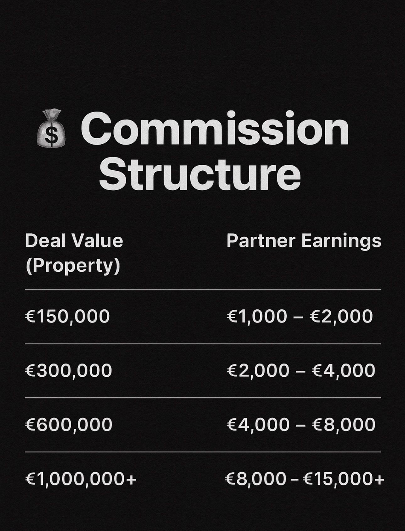 Property value €300,000 → Partner earns €2,000 – €4,000